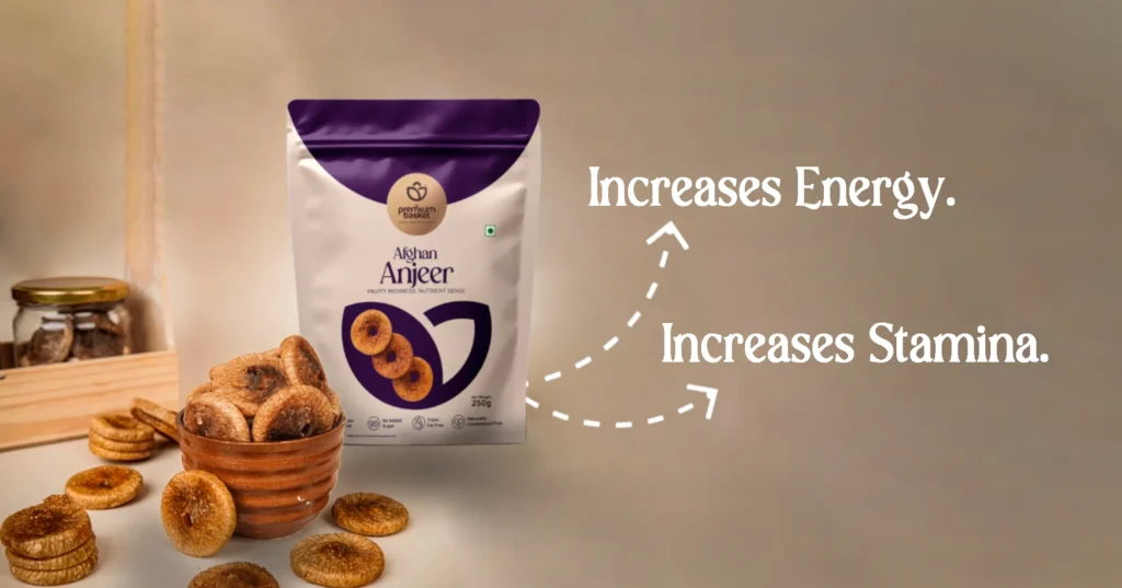 Nutritionally, dried anjeer is highly concentrated. One dried fig provides copper, vitamin B6, magnesium, potassium, and a rich amount of dietary fibre, key nutrients that support energy, digestion, and overall male vitality.