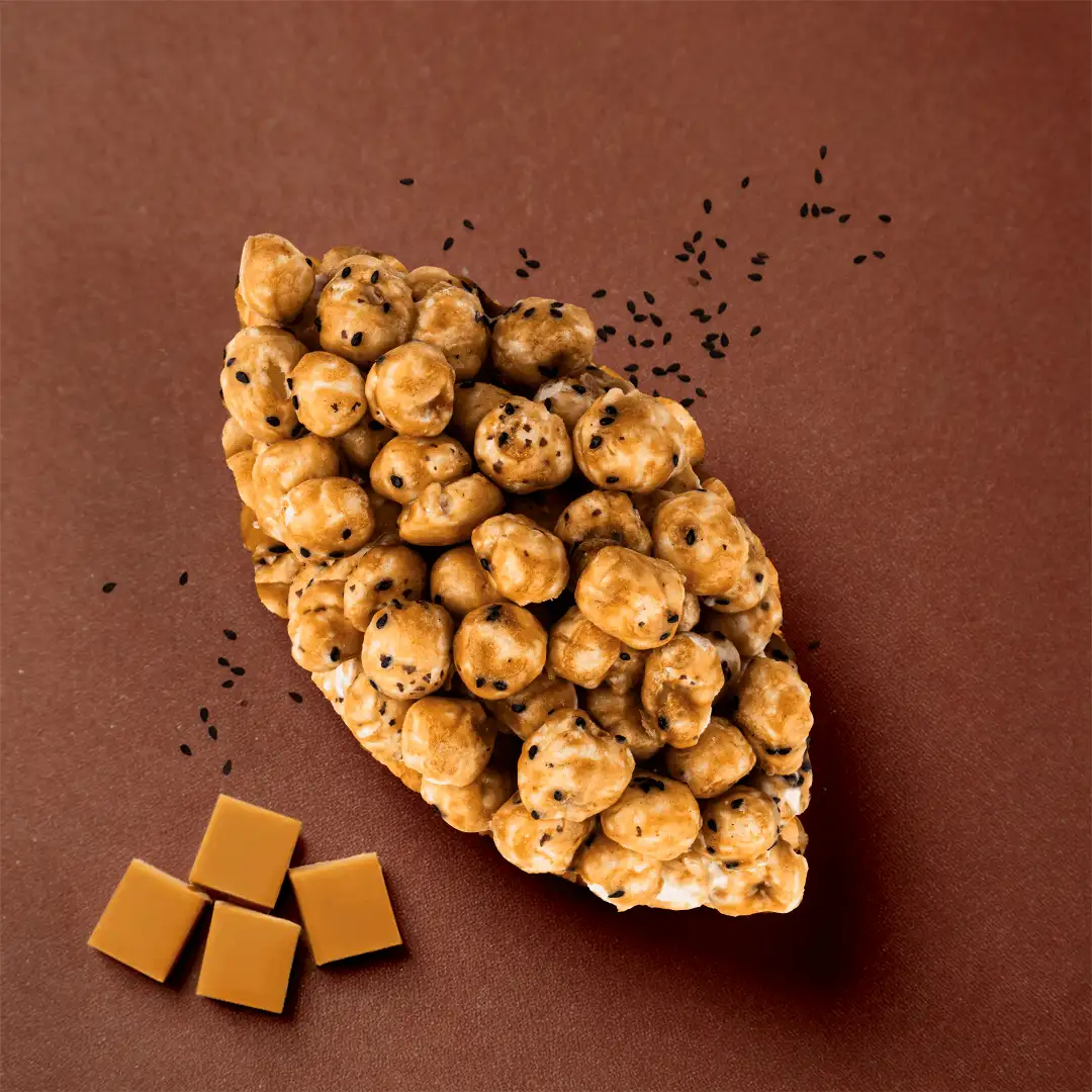 This decadent glaze envelops air-roasted caramel makhana, delivering a perfectly light crunch with every bite. A finishing touch of roasted black sesame seeds adds aromatic nuttiness, beautifully complementing the sweet, buttery toffee.
