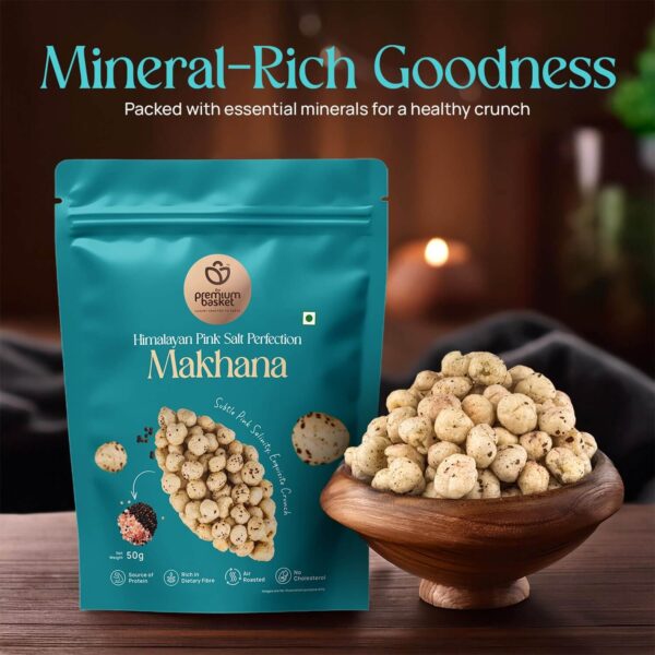 It combines air-roasted makhana, pink Himalayan salt, and black pepper, offering a sophisticated balance of taste, nutrition, and crunch.