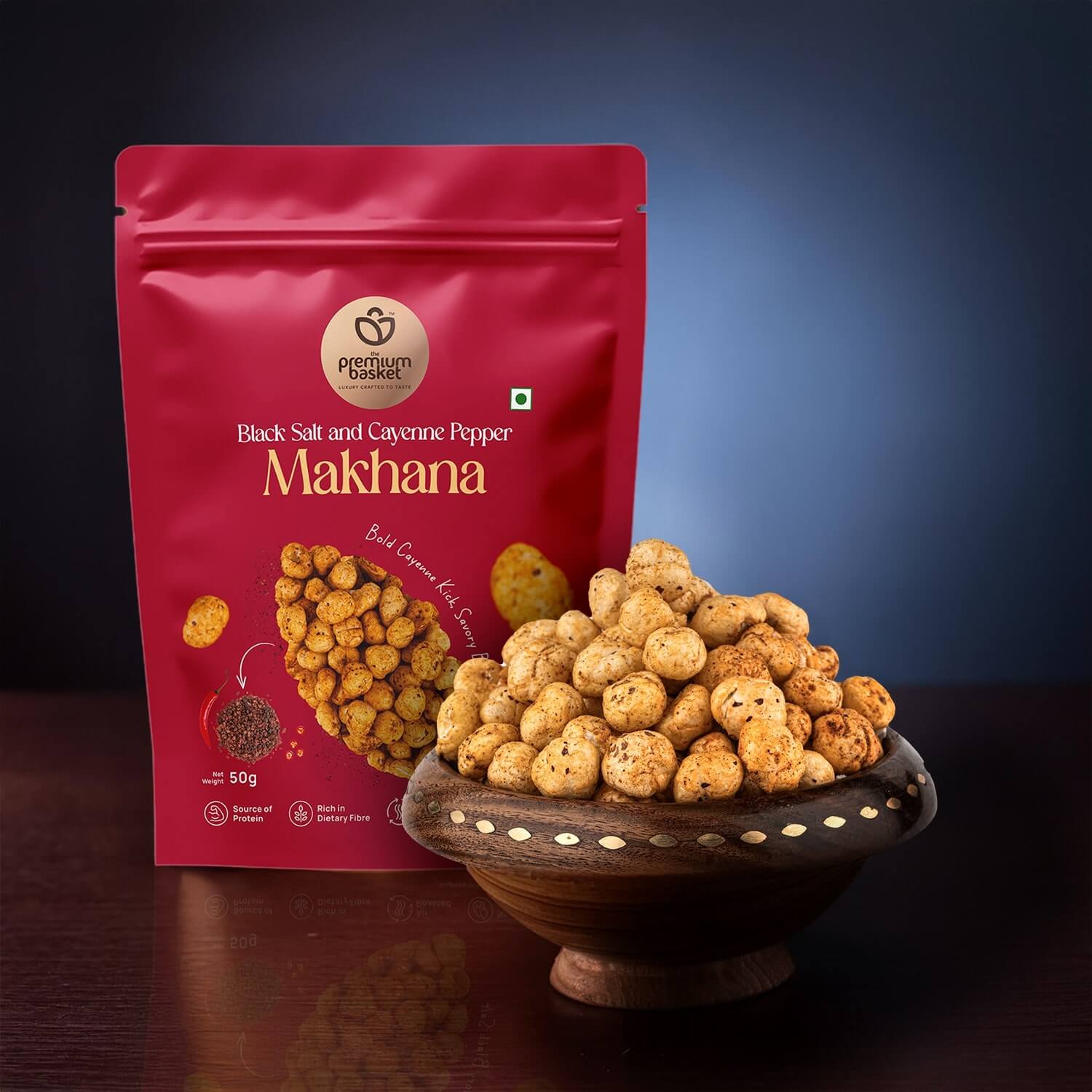 With airy crispness and the smoky warmth of cayenne, balanced by mineral-rich black salt (salted makhana) and aromatic spices, every bite is a guilt-free, gourmet experience that elevates ordinary snacking