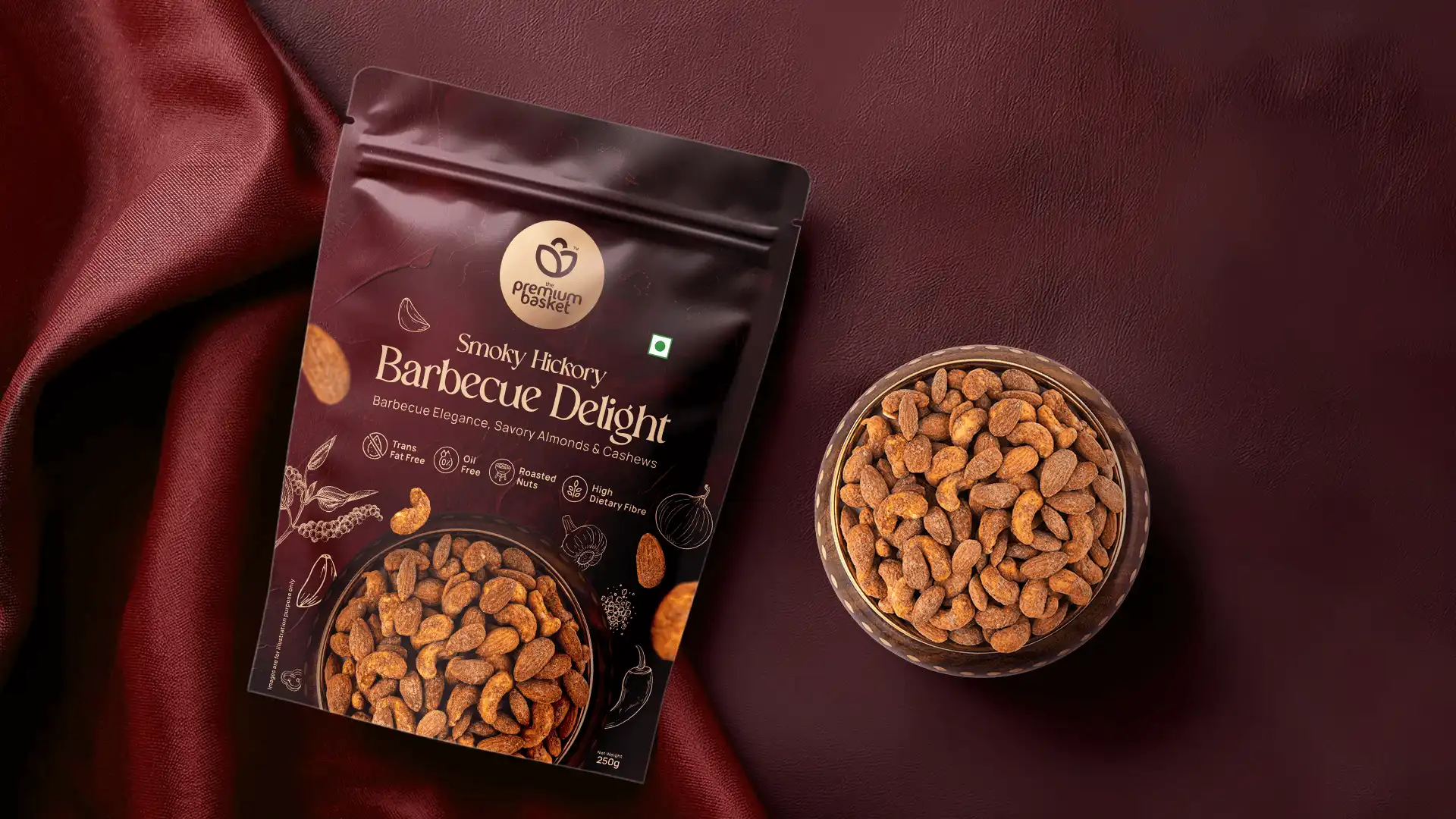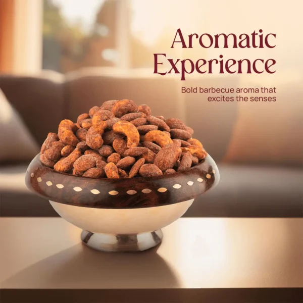 Elevate your snacking moments with Hickory BBQ Almond & Cashew — a perfect blend of smoky flavor, premium craftsmanship, and balanced nutrition, crafted for those who savor the finer things in life.