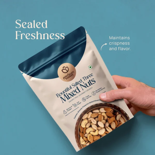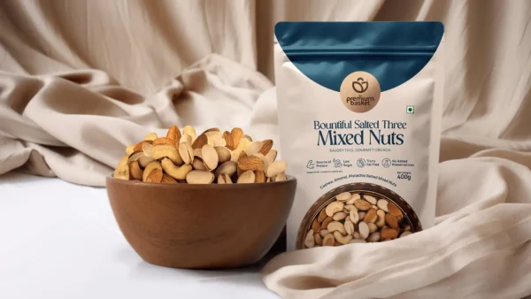 Bountiful Salted Three Mixed Nuts — A perfect harmony of taste, texture, and nutrition — crafted for those who appreciate premium snacking.