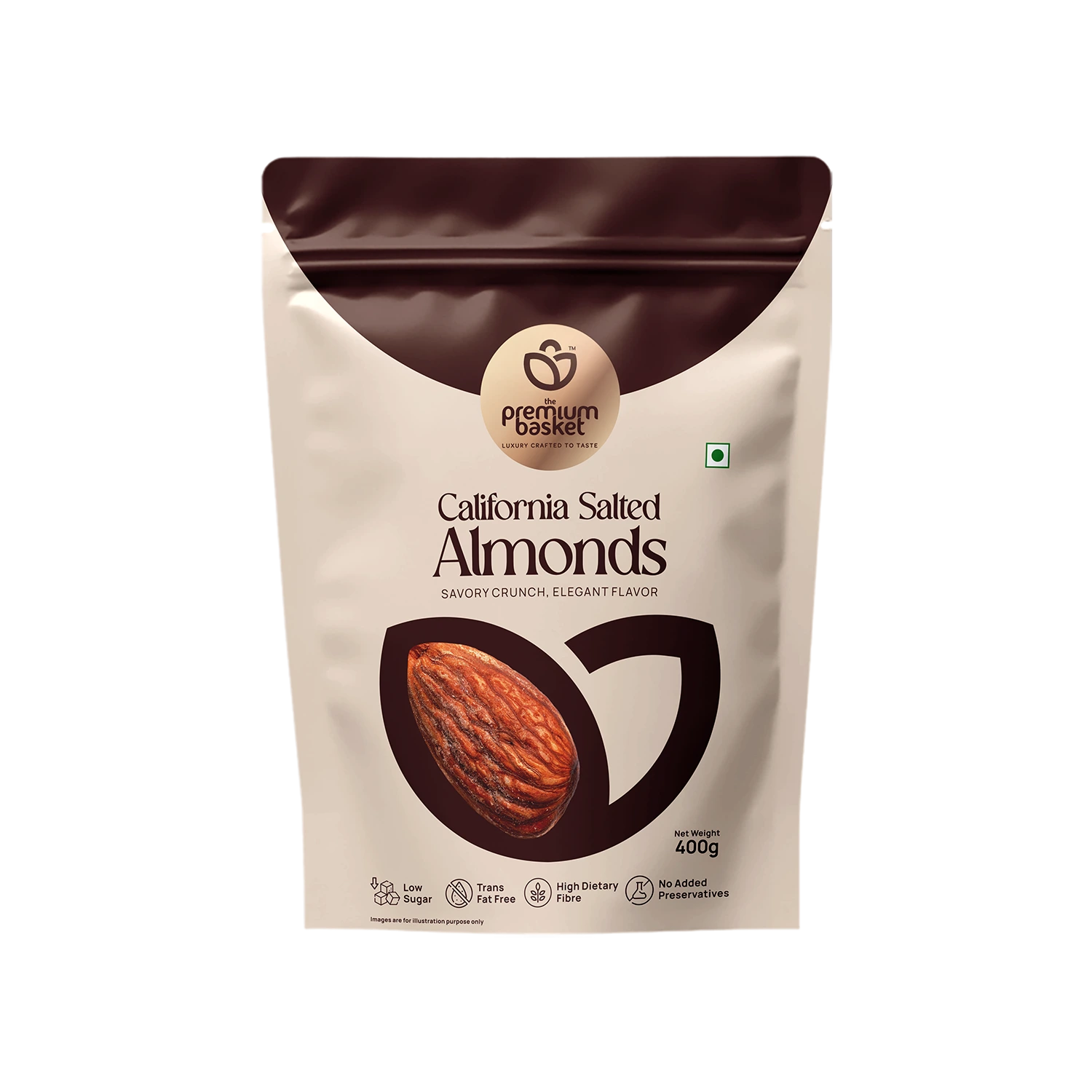 Experience the refined taste of California Salted Almonds – Premium Gold, where natural crunch meets perfectly balanced seasoning.