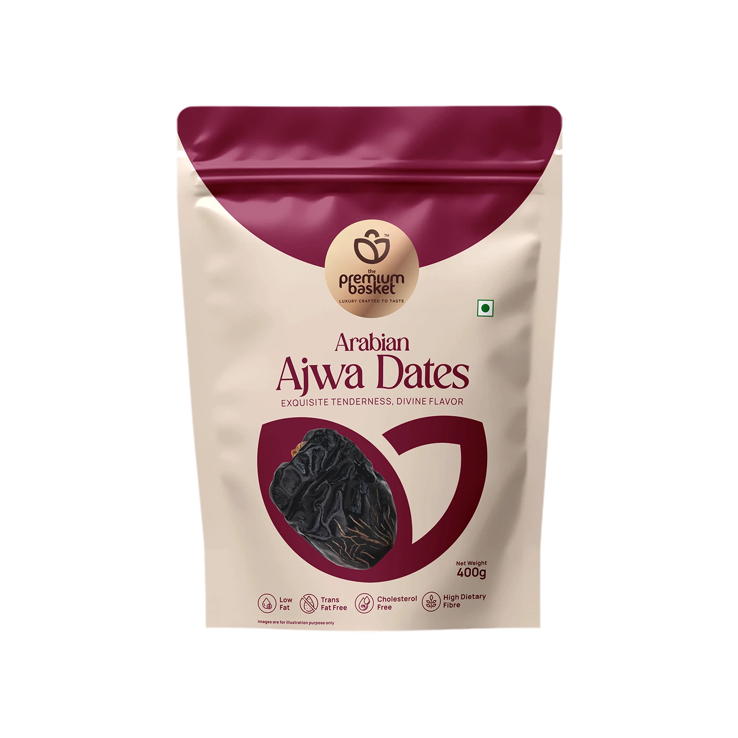 Carefully selected for premium quality, these dates offer a tender texture with subtle caramel undertones that make every bite indulgent yet wholesome. Naturally sweet and free from added sugars, they provide satisfying energy rooted in purity. Being fat free, cholesterol free, and trans fat free, Arabian Ajwa Dates support clean and balanced nutrition. As a source of dietary fibre, they also contribute to digestive wellness and sustained fullness.