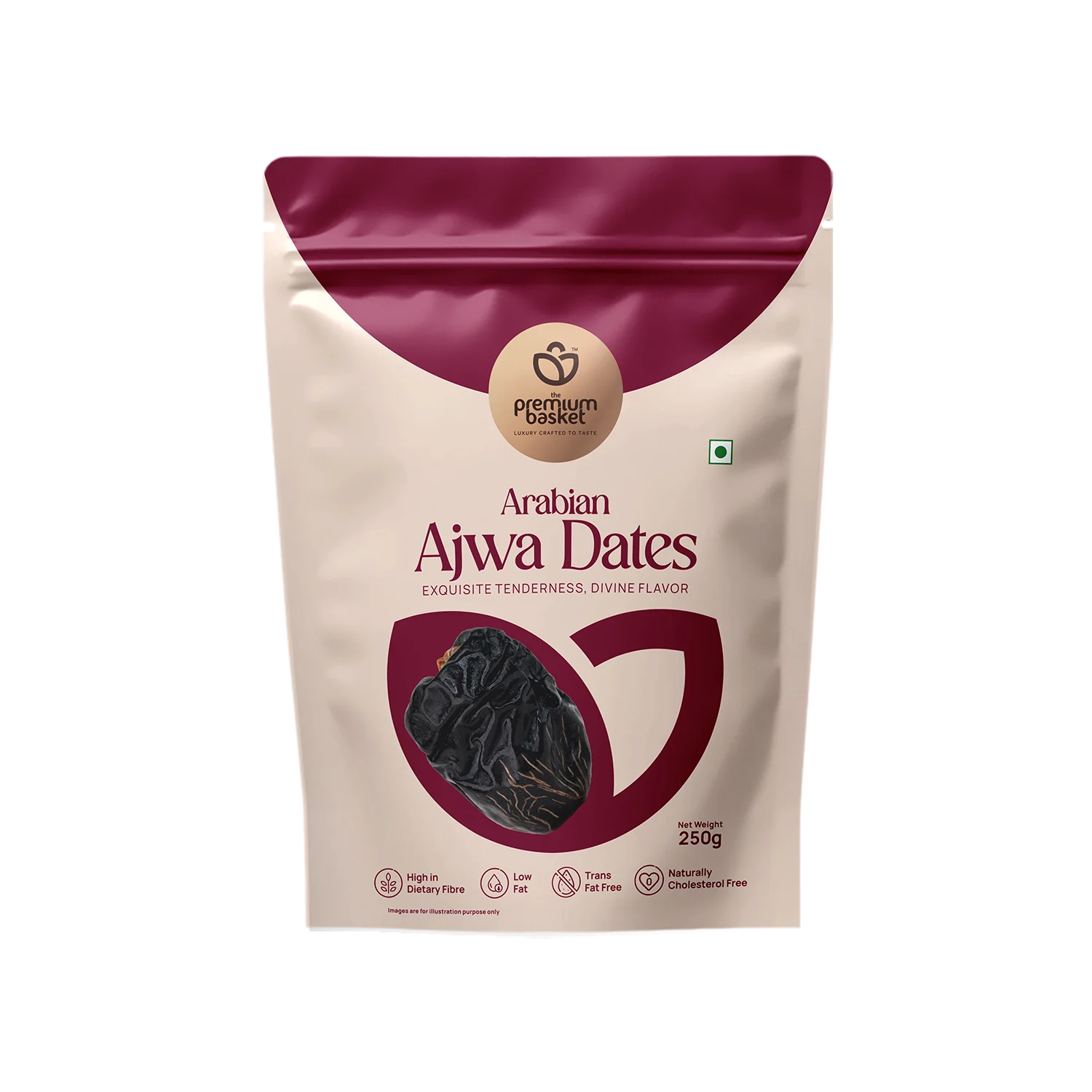 Carefully selected for premium quality, these dates offer a tender texture with subtle caramel undertones that make every bite indulgent yet wholesome. Naturally sweet and free from added sugars, they provide satisfying energy rooted in purity. Being fat free, cholesterol free, and trans fat free, Arabian Ajwa Dates support clean and balanced nutrition. As a source of dietary fibre, they also contribute to digestive wellness and sustained fullness.