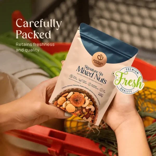 Whether enjoyed straight from the pack, added to breakfast bowls, desserts, or salads, or gifted to loved ones, Signature Six Mixed Nuts combines nature’s finest with modern sophistication.
