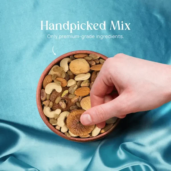 This distinctive blend delivers a delightful mix of nutty richness, natural sweetness, and tangy freshness, making every handful a luxurious snacking experience. Each ingredient is chosen for its superior quality, nutritional depth, and authentic origin. Rich in protein, dietary fiber, calcium, and magnesium, this wholesome mix supports energy, digestion, and overall health — while being 100% natural, trans fat free. It’s crafted for those who seek indulgence without compromise.
