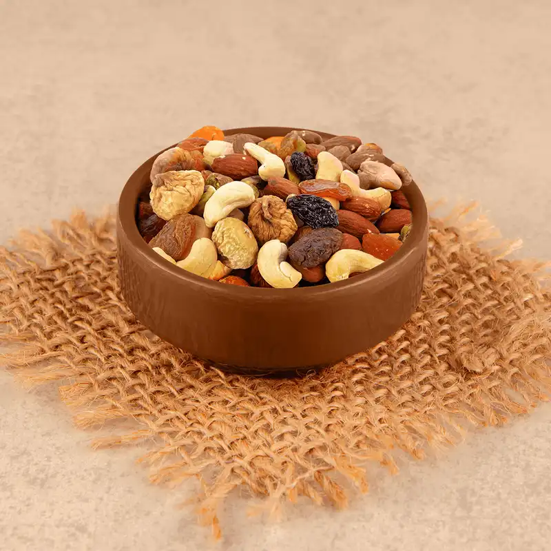A luxurious combination of six premium nuts and dried fruits, each selected for its authentic origin, natural flavor, and superior nutrition — offering a perfect harmony of crunch, sweetness, and tang.